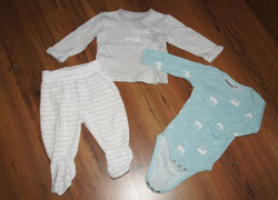 ein tolles Marken Set ferli, Umschlaghose und LA Pullover 56 mit zarten Wolken auf himmelblau